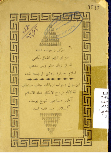 سوال و جواب دينيه: از براي تعليم اطفال مکتبي که از زبان معلم و سرمذهب اسلام بعباره روشن ترجمه شده