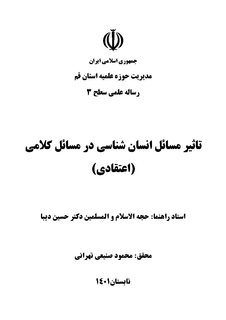تاثیر مسائل انسان شناسی در مسائل کلامی (اعتقادی)