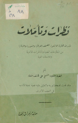 نظرات و تاملات: شذرات مختاره مما نشرته الصحف العراقیه و السوریه و اللبنانیه من المطارحات العلمیه و المناظرات الادبیه و الملاحظات الفنیه