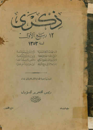 ذکری ۱۲ [اثناعشر] ربیع الاول لسنه ۱۳۵۳ [الف و ثلاثمائه و ثلاث و خمسین]