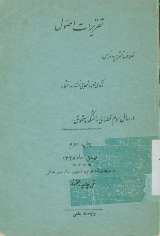 (چاپخانه علمي)[1325 = .ق1365 ( تاریخ انتشار ) (1)