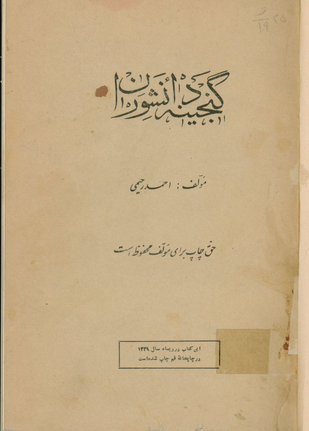 .- ج.۲.در ترجمه مراجع عصر حاضر و اساتيد و مدرسين و مشاهير فضلاء حوزه علميه/ با تصحيح سيد هدايت الله مسترحمي.- ج.۴. در ذکر اوضاع جغرافيائي و تاريخي و مساجد و مدارس علمي و مزارات و مشاهد و اعلام معاصر و گذشته عاصمه تشيع جهان شهرستان عظيم تهران و حومه... ج.۵. در ذکر مساجد و مزارات و مدارس علمي و دانشمندان بلاد و شهرستانهاي ايران باستان و آثار آنان و صدها تصاوير از حرف جيم (جهرم).- ج.۶. در ذکر مساجد و مزارات و مدارس علمي و دانشمندان بلاد و شهرستانهاي ايران باستان و آثار آنان و صدها تصاوير از حرف صاد (صحنه).-ج.۷. در ذکر مساجد و مزارات و مدارس علمي و دانشمندان بلاد و شهرستانهاي ايران و آثار باستان و آثار آنان و صدها تصوير از حرف لام(لار).- ج.۸. <مستدرک گنجينه دانشمندان "کتاب" انقلاب و شهادت>.-<ج.۹. مستدرک گنجينه>