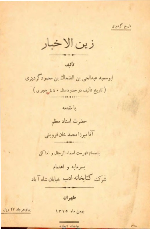 گردیزی، عبدالحی بن ضحاک، قرن 5ق ( پدیدآورنده ) (1)