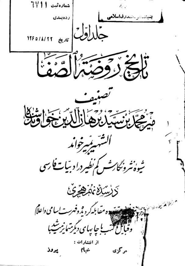 قسم اول کتاب(از اول کتاب تا اخر ذکر سلطنت يزد جردبن شهريار) را دارد.