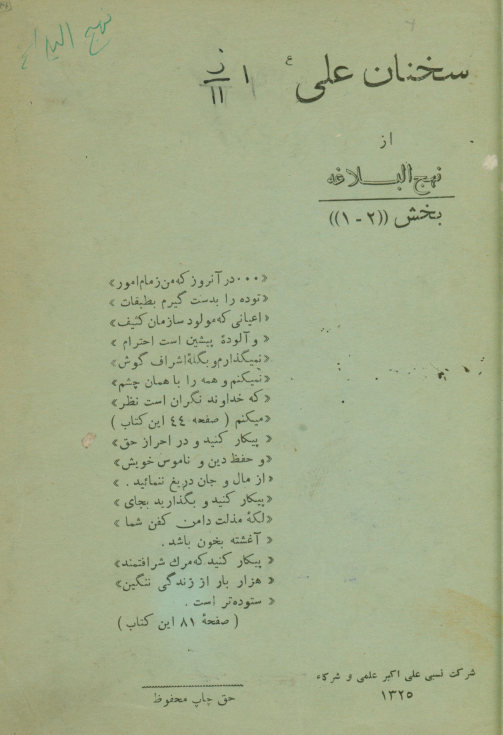عنوان روي جلد: از نهج البلاغه: سخنان علي عليه السلام