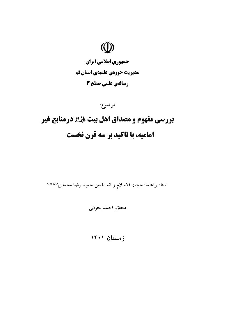 بررسی مفهوم و مصداق اهل بیت علیهم السلام در منابع غیرامامیه، با تاکید بر سه قرن نخست