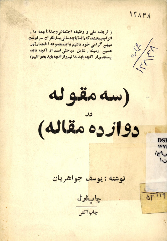 نسخه سوم جلد اول <به همراه مهر کتابخانه موسسه پژوهش و مطالعات فرهنگي> است