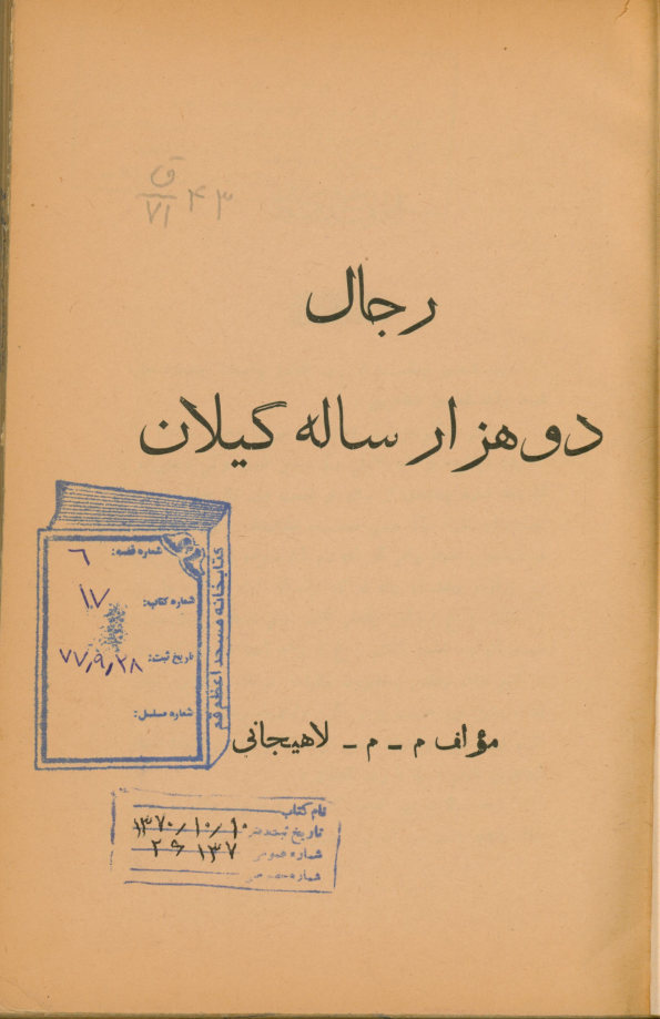 ن.‎1 <اهدا کننده: مهرزاد صفايي> ، ن.‎2 <اهدا کننده: موسسه پژوهش و مطالعات فرهنگي>