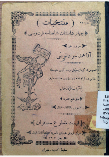 منتخبات چهار داستان شاهنامه فردوسی مخصوص شاکردان [صحیح: شاگردان] سیکل اول مدارس متوسطه مطابق پروگرام ۱۳۰۷ وزارت جلیله معارف